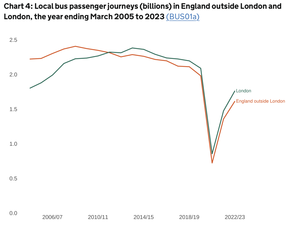 Source : Annual bus statistics: year ending March 2023 (revised) – Department for Transport