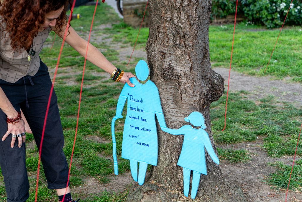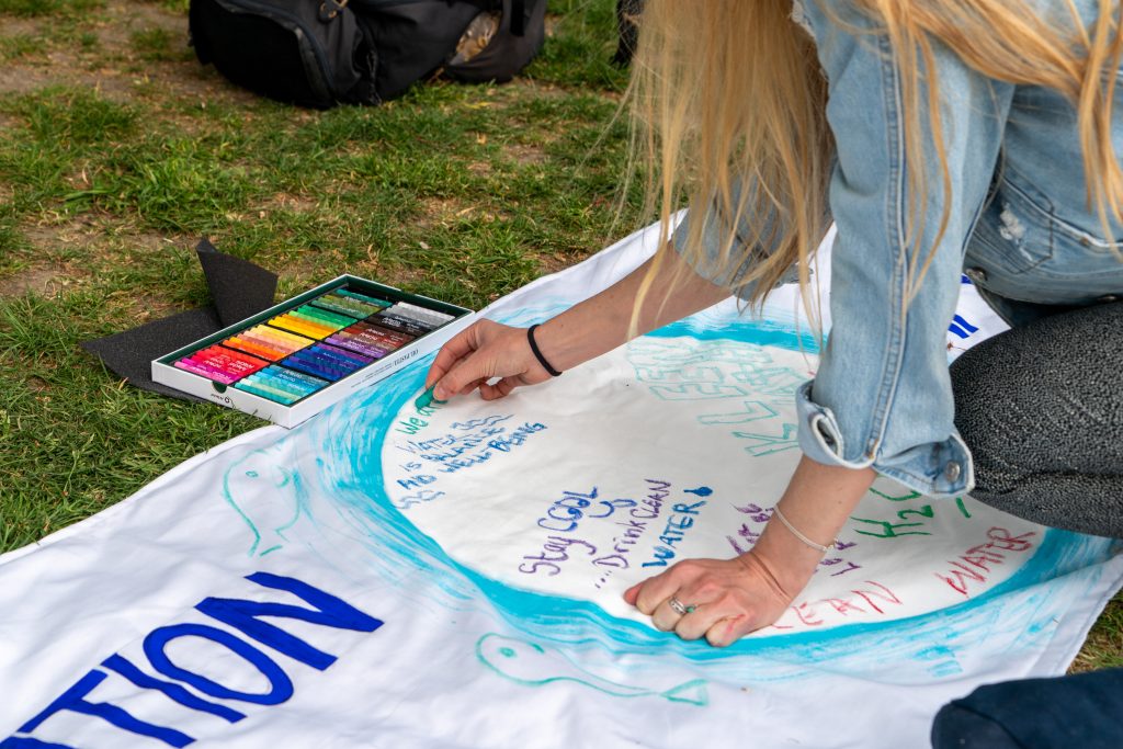 As Naila guided volunteers of all ages, the trail came to life with swimming fish, scattered poetry, reflections from the public, and chalk-sketched conversations between generations. Onlookers paused, asked questions, and added their own thoughts to a shared circle on the banner — a visual reminder that clean water is everyone’s concern.